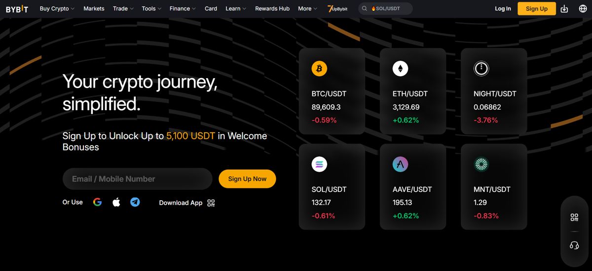- 独特功能:TradeGPT AI 助手(500 万用户);跟随多达 10 位主交易员进行复制交易;用于代币化传统资产的 Bybit TradeFi