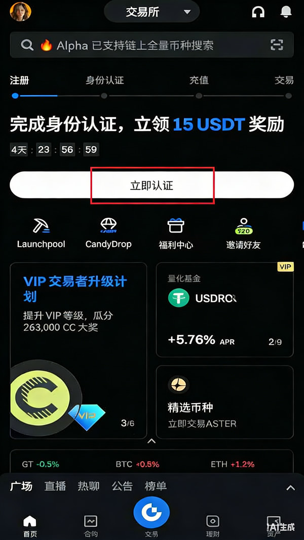 - ✅ 解锁更多Gate功能 —— 比如C2C交易(场外法币交易)、理财产品、杠杆交易等,没实名认证会有诸多限制。