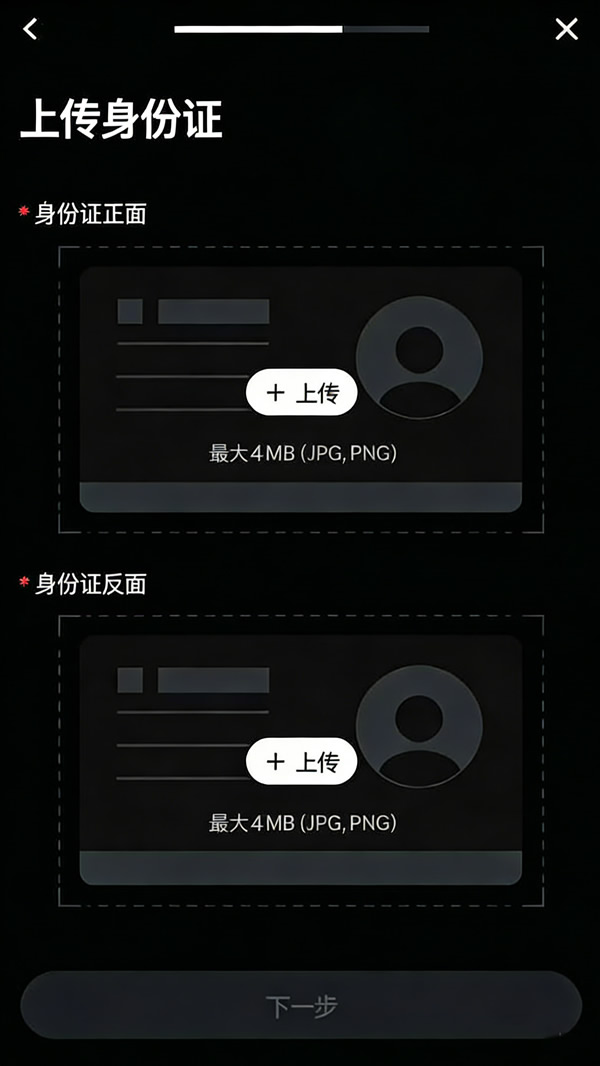 6.上传身份证正面》和身份证反面照片