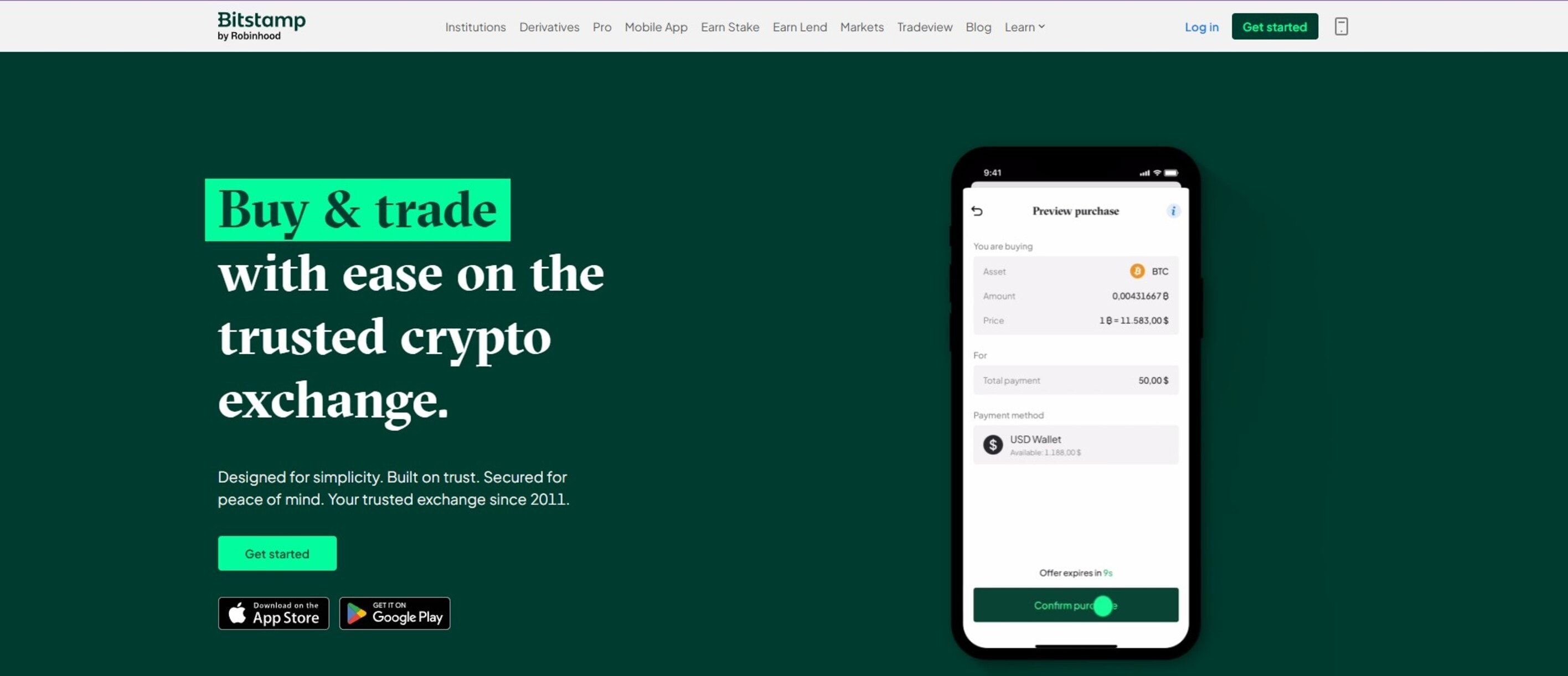 9. Bitstamp – 最适合简单可靠的交易