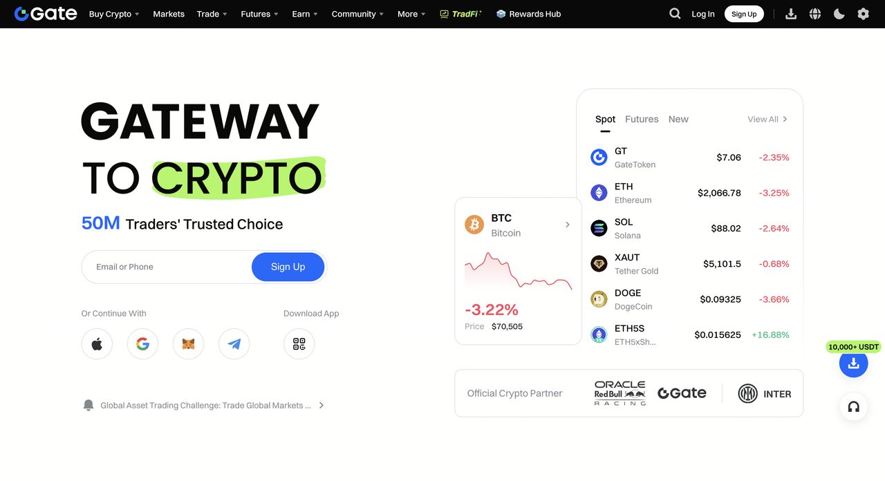 Gate以其广泛的数字资产选择和新代币的快速上市而著称。除现货市场外,该平台还提供衍生品、保证金交易和额外投资工具。该交易所还积极发展其发射台、被动收入服务和参与早期项目的产品。加密货币存款无最低要求,稳固的流动性支持快速运行。