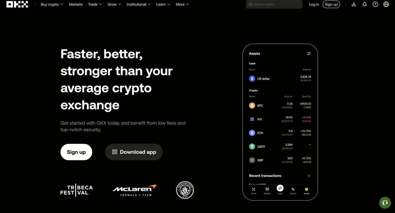 OKX是拥有广泛生态系统的最大国际加密货币交易所之一。该平台提供现货和保证金交易、USDT 期货、期权、强大的 P2P市场,以及包括质押、结构化产品和赚取计划在内的被动收入产品。此外,OKX正积极发展其 Web3方向,包括自己的钱包和去中心化应用程序访问。在加密货币转帐无最低存款要求和由数十亿日交易量支持的持续高流动性下,它仍然是强有力的竞争者。