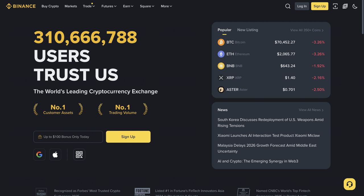 Binance是按交易量计算的最大加密货币交易所,拥有全球用户群。该平台提供现货和衍生品交易、期权、质押、发射台、 P2P服务、 NFT平台和广泛的被动收入产品。该交易所面向重视高级分析和风险管理工具的初学者和专业交易者。加密货币的最低存款实际上为零,其无与伦比的流动性平均每日超过100亿美元。