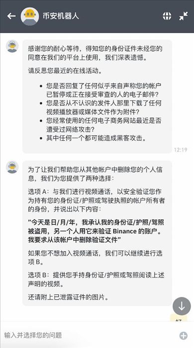 以币安为例,如果你发现自己的个资被盗用了在币安交易所上 KYC,客服会请你视频通话或者录制视频,并念出“今天是日/月/年,我承认我的身份证/护照/驾照被盗用,另一个人用它来验证 Binance 的账户。 我要求从该账户中删除验证文件。 “ 以兹证明你的个资是真的被盗用了,后续币安客服会封锁原帐号,你也可以使用自己的个资来进行自己帐号的 KYC。