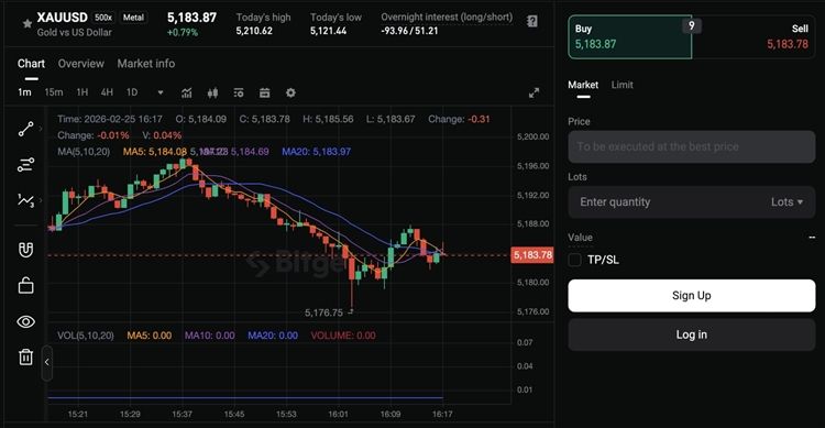 Bitget 上的实时黄金价格–数据截至2026年2月