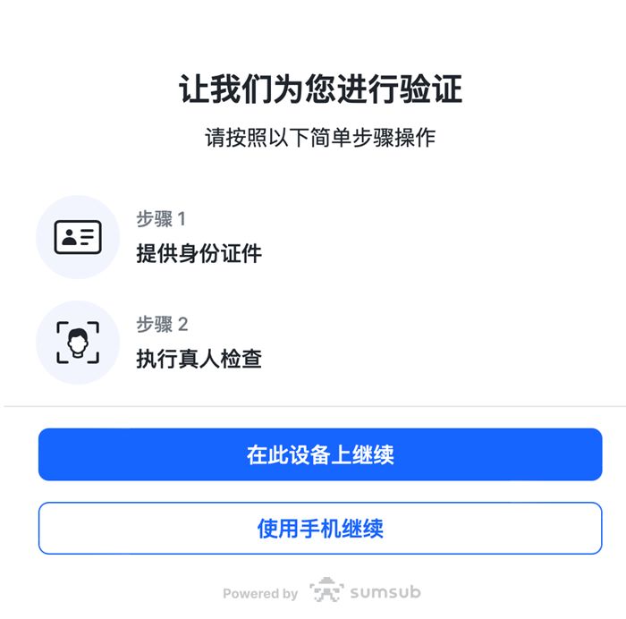 首先介绍【APP Sumsub渠道的认证步骤】,如果您所在国家/地区不支持Sumsub认证,请参考【APP人工渠道的认证步骤】。