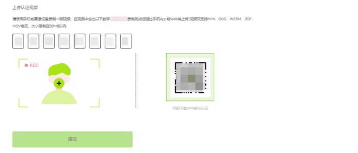 录制认证视频时,请您朗读页面上提供的数字,完成后即可上传视频。视频仅支持MP4、OGG、WEBM、3GP、MOV格式,大小限制在50MB以内。