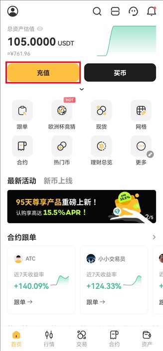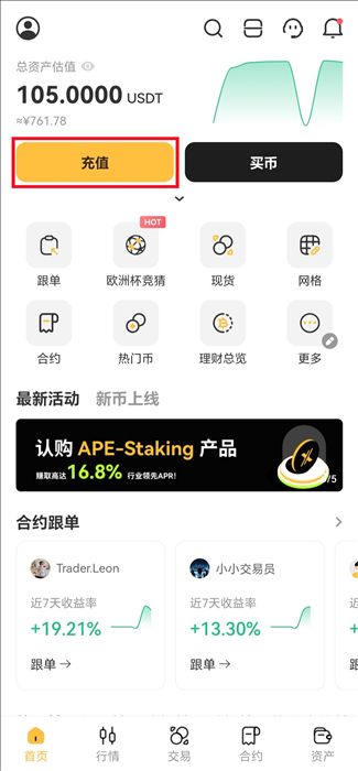 1.登录XT App并点击【充值】。