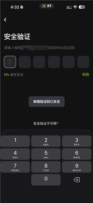 邮箱 2FA:输入邮箱地址以通过您的邮箱接收验证码。将验证码输入到XT页面并进行验证。完成系统要求的其他安全验证。