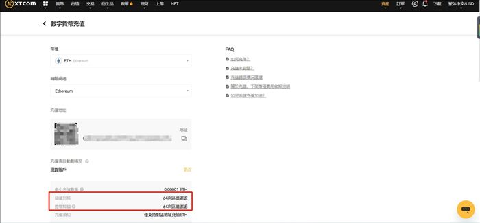 2)到账后,账户的等值充值金额将会暂时冻结,达到 64个区块确认数后可以进行提现操作。