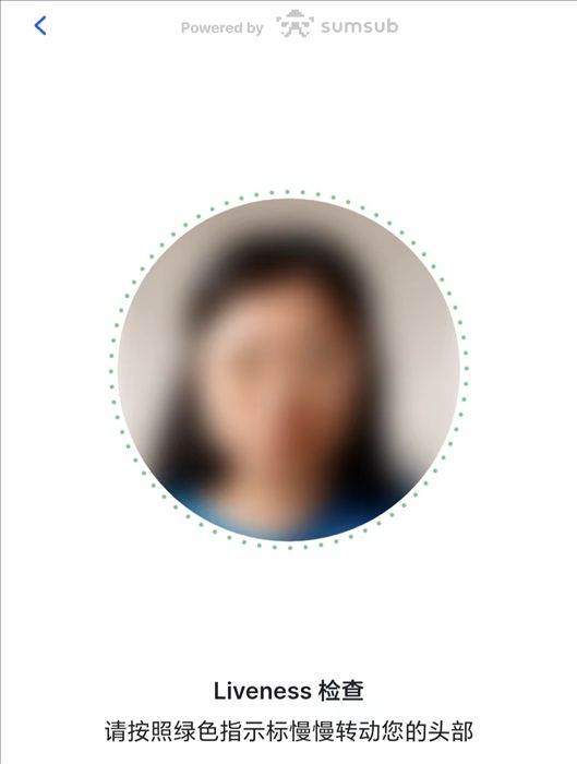 之后,系统会要求您完成活 体检测。将脸部置于圆圈中央,根据屏幕上指示操作。注意:请不要戴帽子、眼镜,并确保光线充足。
