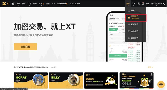 XT交易所怎么提现 双平台提现数字货币流程