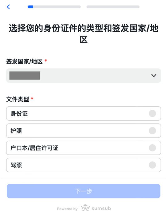 选择您的身份证件的签发国家/地区以及文件类型。