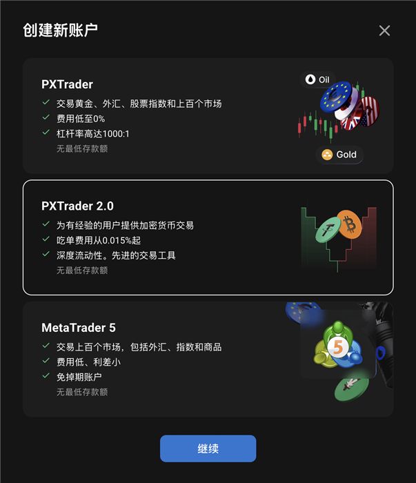 如果你想在同一个平台即能进行虚拟货币合约交易,又能交易黄金、外汇等衍生品交易,那么十分推荐你尝试一下 PrimeXBT。