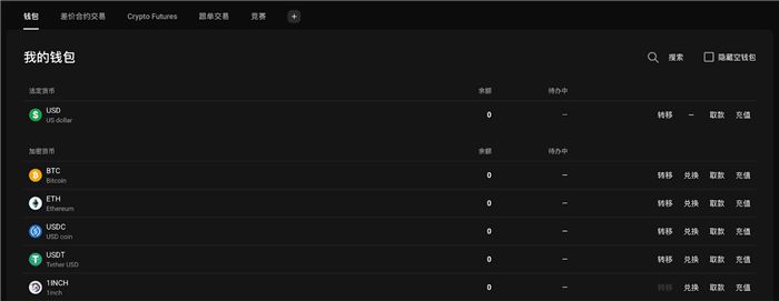 交易账户:充值 USDT、USDC 等币种以开始交易。