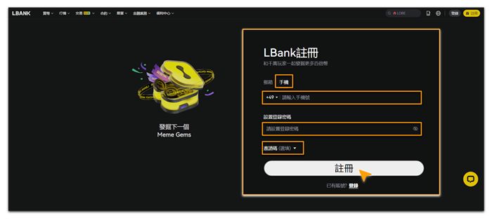如何使用手机号注册 LBank