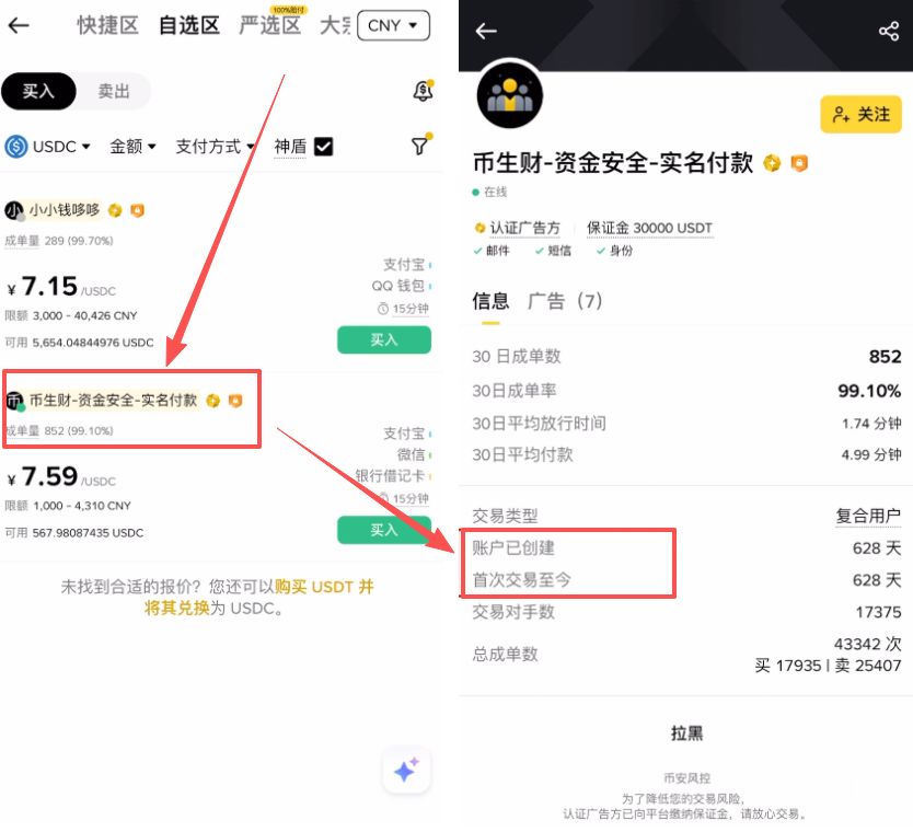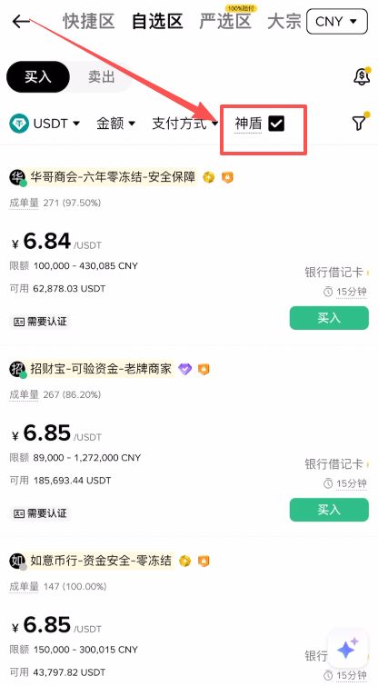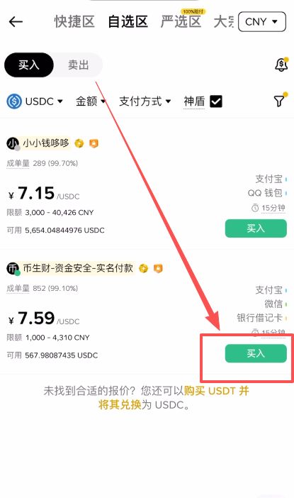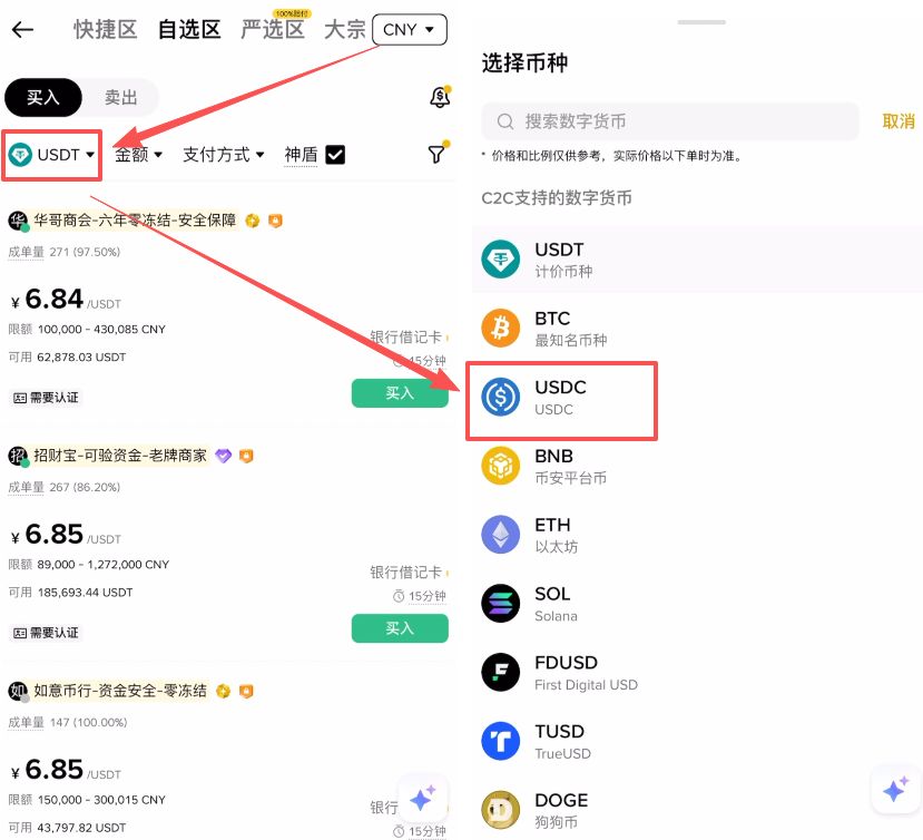 第三步:筛选币种与优质商家