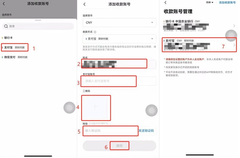 支付宝和微信是如何添加的呢?我们来演示一下。点击【支付宝】,输入你的支付宝账号,再把你的支付宝二维码添加进去。发送验证码。点击【保存】。这时我们的支付宝就添加成功了。微信也是同理,也是一样的方法。