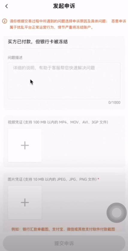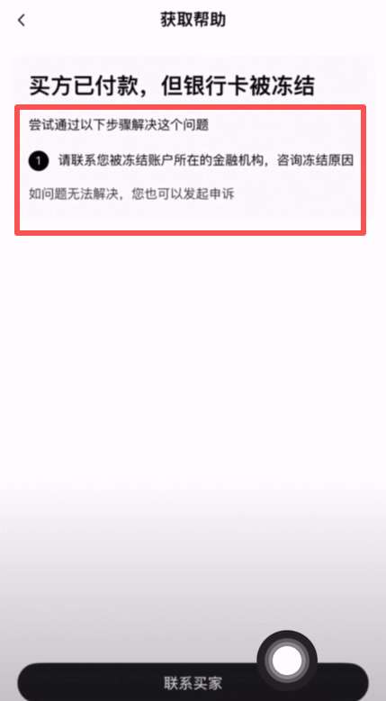 有一条选项是买方已经付款,但银行卡被冻结,我们继续点进去。